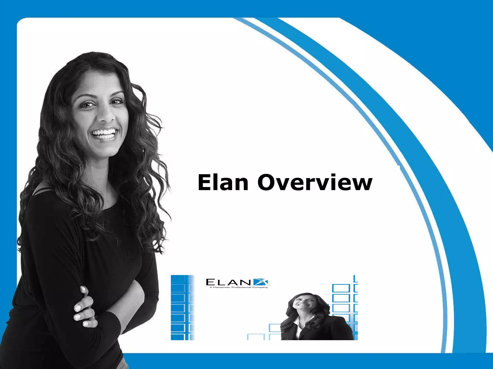 Elan is a large recruitment company with 4,500 offices across 80 countries. It has 58 offices and over 10,000 IT contractors in 17 countries. Elan provides recruitment and outsourcing services for permanent and contract positions across various industries including telecom, FMCG, finance, consulting, and energy. Its services include search and selection, contracting, outsourcing, and training. Elan has a global network of partners and aims to be the leading recruitment partner through innovation and cost-efficient solutions.