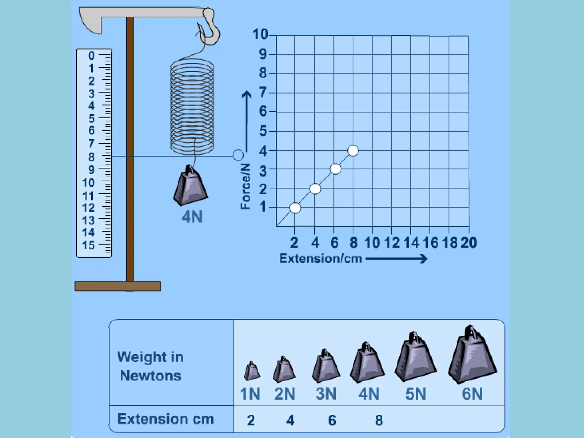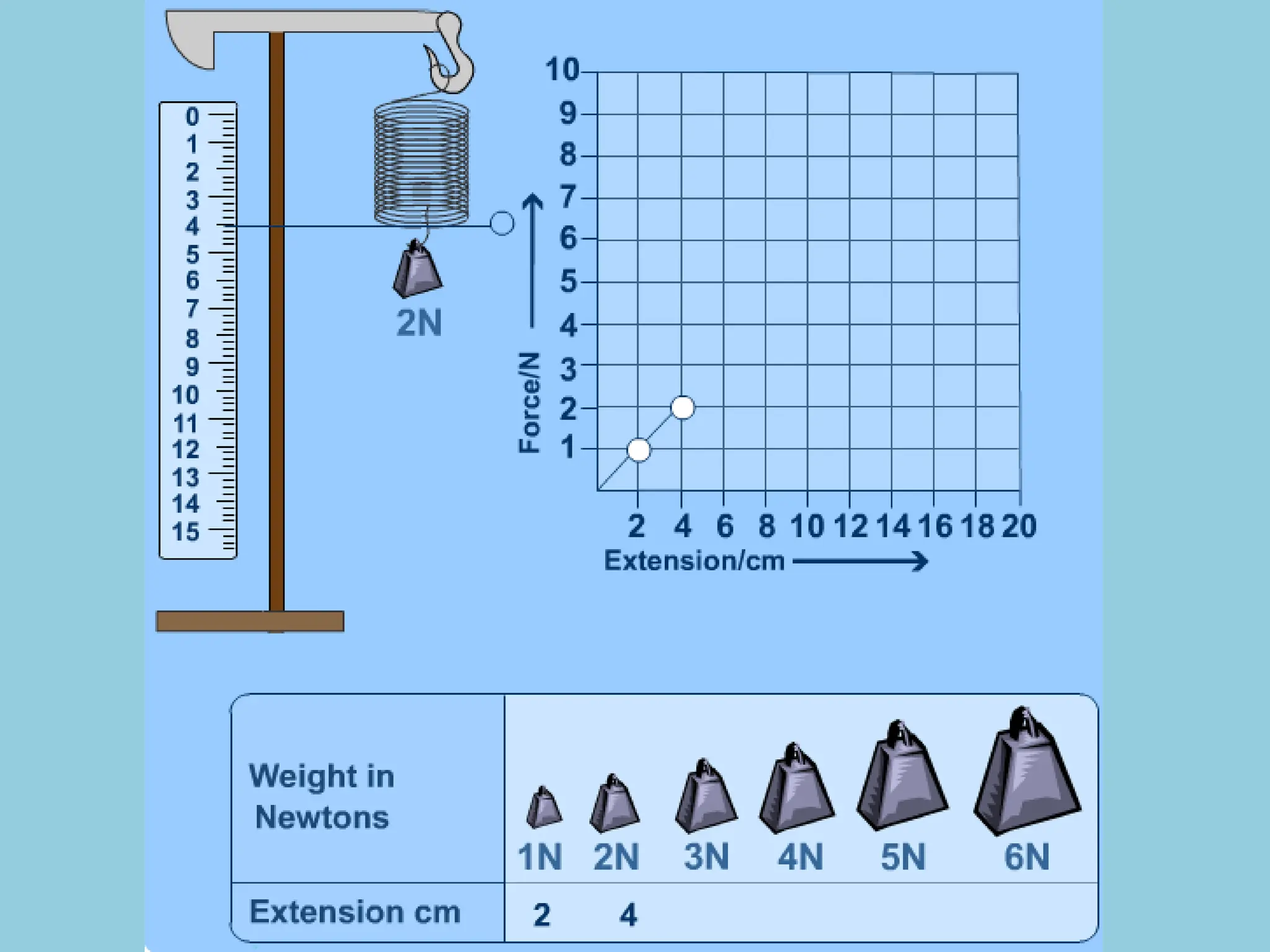 #8 Elastic limit can be seen on the graph. Anything before the limit and the spring will behave elastically. This is where the graph stops being a straight line. If you stretch the spring beyond this point it will not return to its original size or shape.