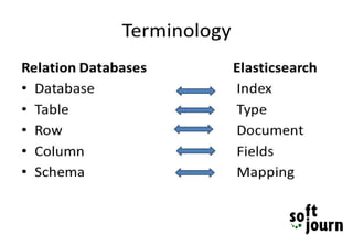 Elasticsearch is a search engine based on Apache Lucene that provides distributed, full-text search capabilities. It allows users to store and search documents of any structure in near real-time. Documents are organized into indexes, shards, and clusters to provide scalability and fault tolerance. Elasticsearch uses analysis and mapping to index documents for full-text search. Queries can be built using the Elasticsearch DSL for complex searches. While Elasticsearch provides fast search, it has disadvantages for transactional operations or large document churn. Elastic HQ is a web plugin that provides monitoring and management of Elasticsearch clusters through a browser-based interface.