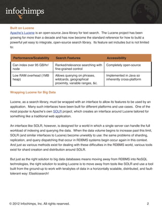Elasticsearch is a scalable and fault-tolerant database built on Apache Lucene, designed to handle large volumes of data while providing powerful full-text search capabilities. It offers advanced features such as geo queries, complex document structures, and an easy-to-use REST API, making it suitable for building various applications. Its architecture allows for robust administration and monitoring, ensuring high availability and performance for complex data operations.