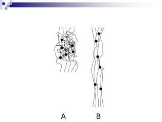 Elastomers are polymers that have over 200% elastic elongation. They can be thermoplastic or thermoset. Elastomers have highly random, flexible chains that allow easy movement under tension, returning to their original shape when tension is removed. High strength comes from hindered movement or strong interactions between molecules. Natural rubber is a cis-polyisoprene elastomer. Vulcanization adds crosslinks for improved properties. Elastomers are used in products requiring cushioning, resilience, or flexibility like gloves, tires, and mattresses.