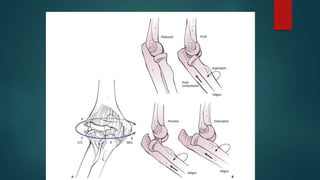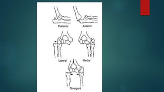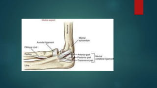 1. Elbow dislocations are most commonly caused by falls onto an outstretched hand and involve the disruption of the lateral and medial collateral ligaments and elbow capsule.