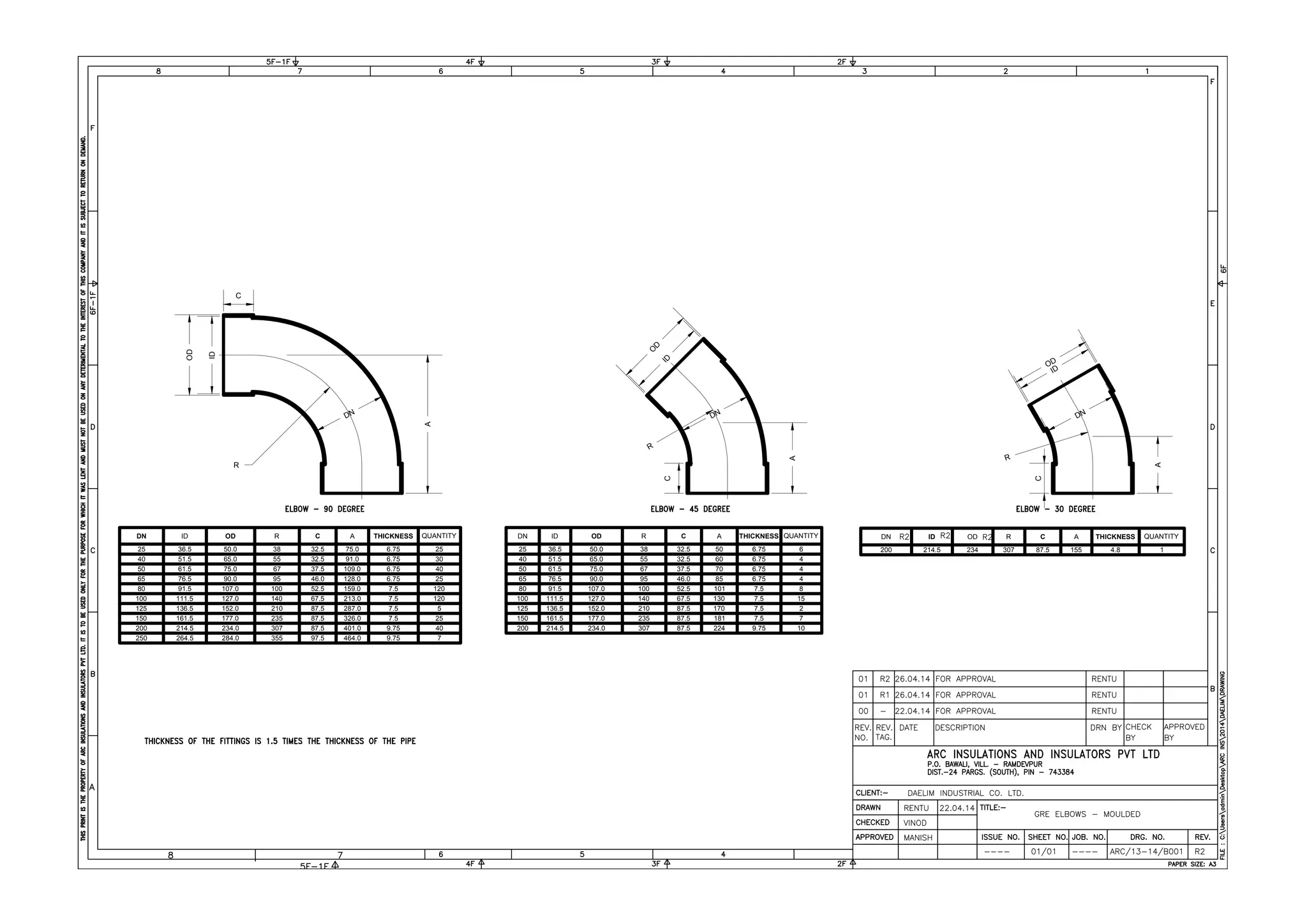 This document contains technical specifications for pipes including their internal diameter (ID), outer diameter (OD), radius (R), circumference (C), average thickness, and quantity. The pipes are grouped into different sizes ranging from ID of 25 to 250 in increments of 25. The thickness ranges from 4.8 to 9.75 and quantities range from 1 to 120 per size.