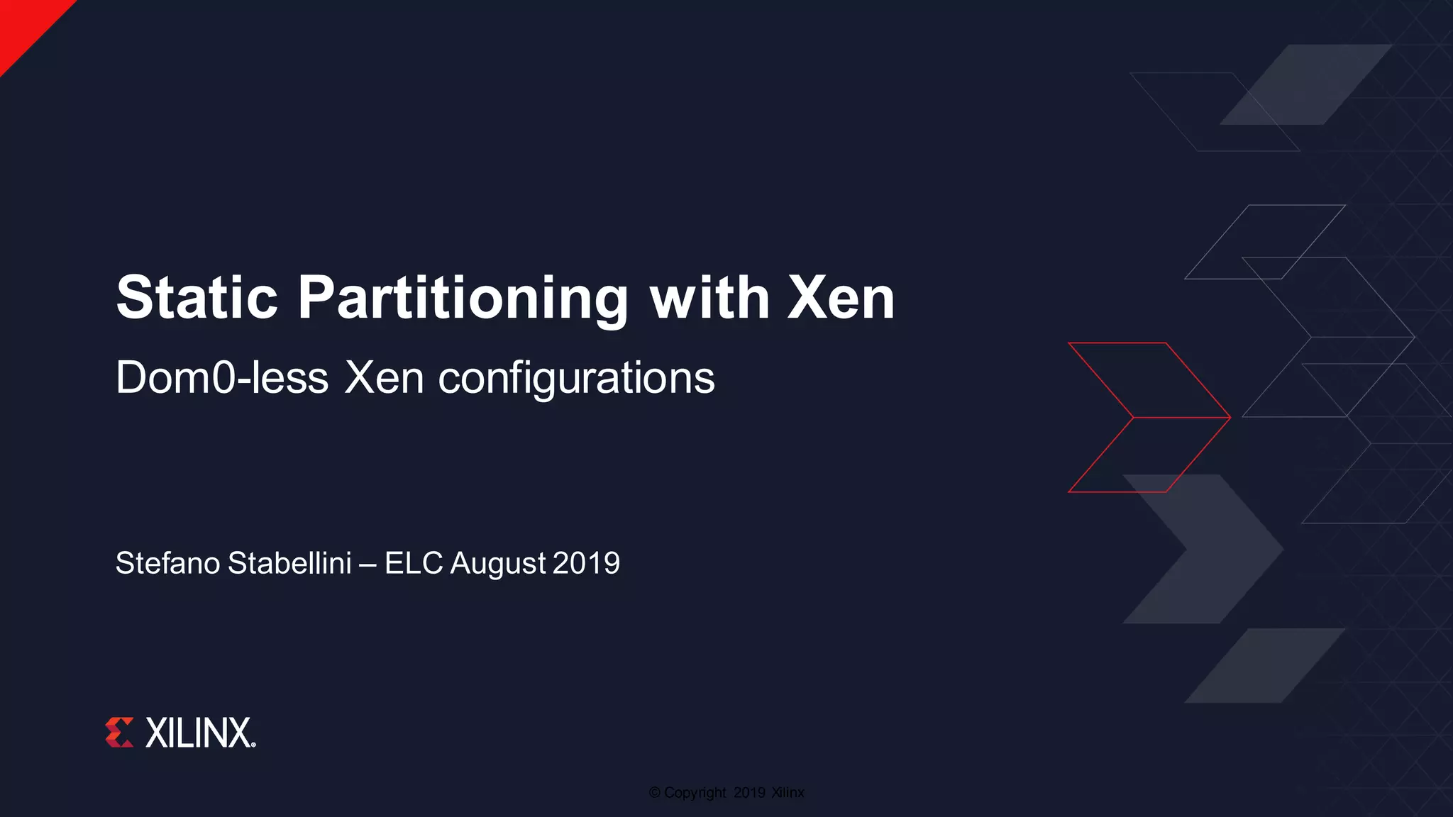 The document discusses static partitioning configurations using Xen hypervisor without a privileged dom0, focusing on use cases such as mixed criticality, safety, and security. It describes the boot process, advantages like faster startup and lower complexity, and challenges including lack of monitoring and missing PV drivers. It concludes with a status update on implementation progress and future tasks related to dom0-less system capabilities.
