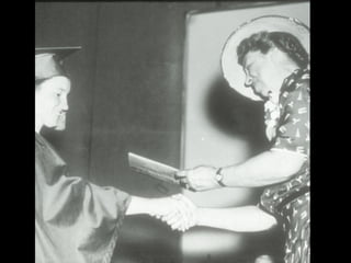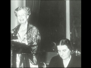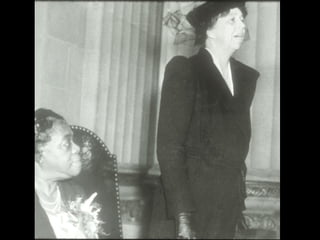 The document provides an overview of the life of Eleanor Roosevelt, covering her dates of birth and death. It includes acknowledgments for contributions from various organizations and individuals, as well as sources for the photographs and text used. The adaptation of the text is intended for elementary students based on information from the National Park Service.