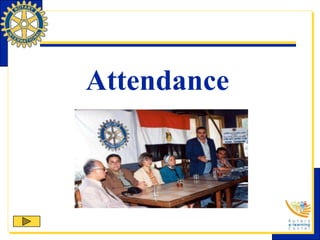 Rotary clubs require members to meet minimum attendance requirements to remain in good standing. Members must attend or make up at least 50% of meetings in each half of the year and 30% of their own club's meetings. Acceptable makeups include attending other Rotary, Rotaract, or Interact club meetings, participating in club service projects, or attending district or international meetings. Failure to meet attendance requirements may result in termination of membership.