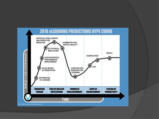 This document discusses e-learning and MOOCs. It begins by defining e-learning as using electronic technologies to access education outside a traditional classroom. It then describes the two types of e-learning - synchronous and asynchronous - and discusses learning management systems (LMS), which are software platforms that facilitate online learning. The document also discusses MOOCs (Massive Open Online Courses), explaining their open access nature, scale, and role in distance learning compared to online college courses. It provides an overview of top MOOC platforms and notes that Turkey's first MOOC application was through the e-university platform in 2013.