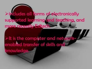 The document discusses new tools for learning in the new economy. It focuses on technology-based instruction and internet-enabled instruction which allow for new forms of learning using technology and online resources. These tools are changing how instruction is delivered and accessed to support the new economy.
