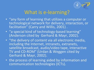 1) For college students, it uses platforms like Moodle and Edu2.0 to provide online content and discussion forums to supplement in-person classes.