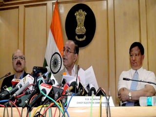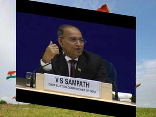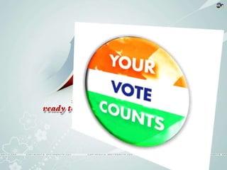 Elections are the foundation of democracy in India, allowing citizens to participate directly by electing their representatives. The Election Commission of India oversees free and fair elections according to detailed procedures, including preparing voter rolls, approving candidates, monitoring campaign spending, and ensuring proper voting and counting. Their independence from the government helps preserve democracy in India.
