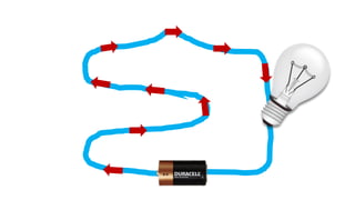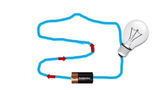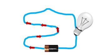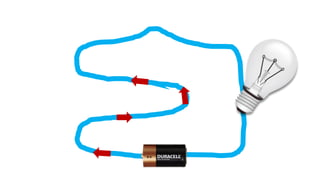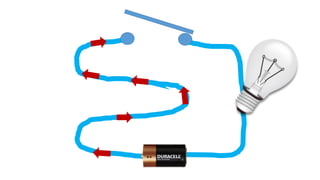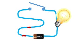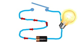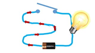 An electric circuit is a closed loop made up of a generator, wires, and devices like light bulbs. Electricity can only flow through the circuit when the switch is closed, completing the loop and allowing the current to power the light bulb. Opening the switch breaks the circuit, stopping the electricity from flowing.
