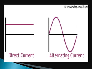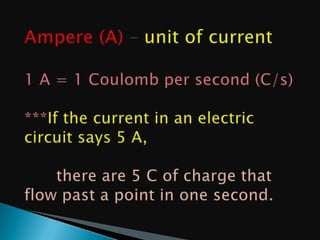 To produce 1 coulomb of electric charge, 6.3 x 10^18 electrons are required. A battery produces direct current (DC) in a circuit because the terminals have the same opposite charges, while household circuits use alternating current (AC) where there is a continuous back and forth movement of electrons. AC is provided by power companies and DC is provided by batteries.
