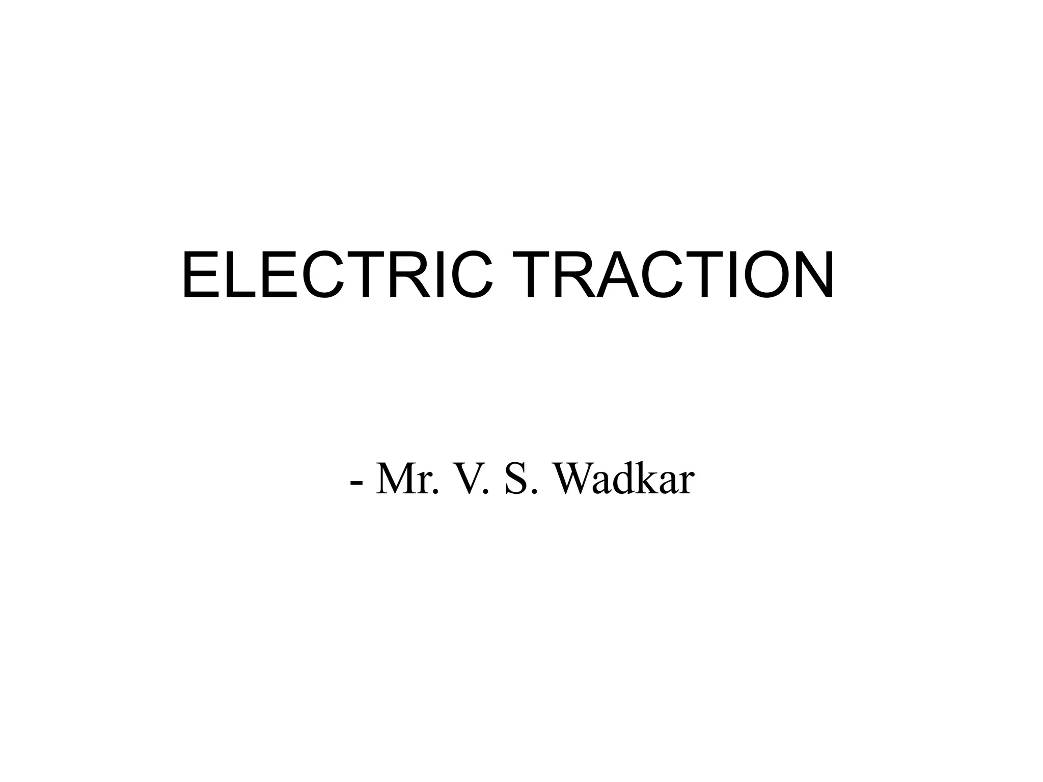 The document discusses electric traction for train services. It describes the different types of train services as urban/city, suburban, and main line services. It then explains the speed time curve which plots the instantaneous speed of a train over time and includes periods of acceleration, reaching maximum speed, coasting, and braking. It notes the speed time curve can be simplified, trapezoidal, or quadrilateral in shape. Finally, it defines maximum, average, and schedule speeds for train services.