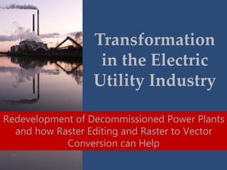 The electric utility industry is undergoing a significant transformation due to the closure of aging coal and oil-fired power plants, with a focus shifting towards natural gas. This situation presents opportunities for redevelopment and repurposing of these sites, leveraging advancements in raster editing and raster-to-vector conversion technologies. Such tools enable efficient management and modernization of the outdated power plant documentation, facilitating the transition to new energy infrastructures.
