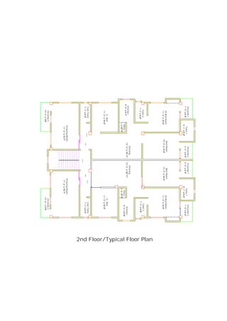 This document provides calculations for the electrical design and lighting selection for a two unit residential building. It includes lumen calculations and light selections for each room in both units. It also includes point calculations to determine the wire size for each circuit based on the load and number of outlets. The calculations follow Indian electrical standards and consider the lumens required based on room size and usage to select the appropriate lighting fixtures.