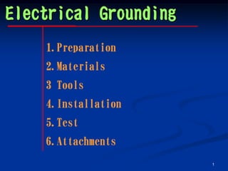 This document provides instructions for electrical grounding, including: