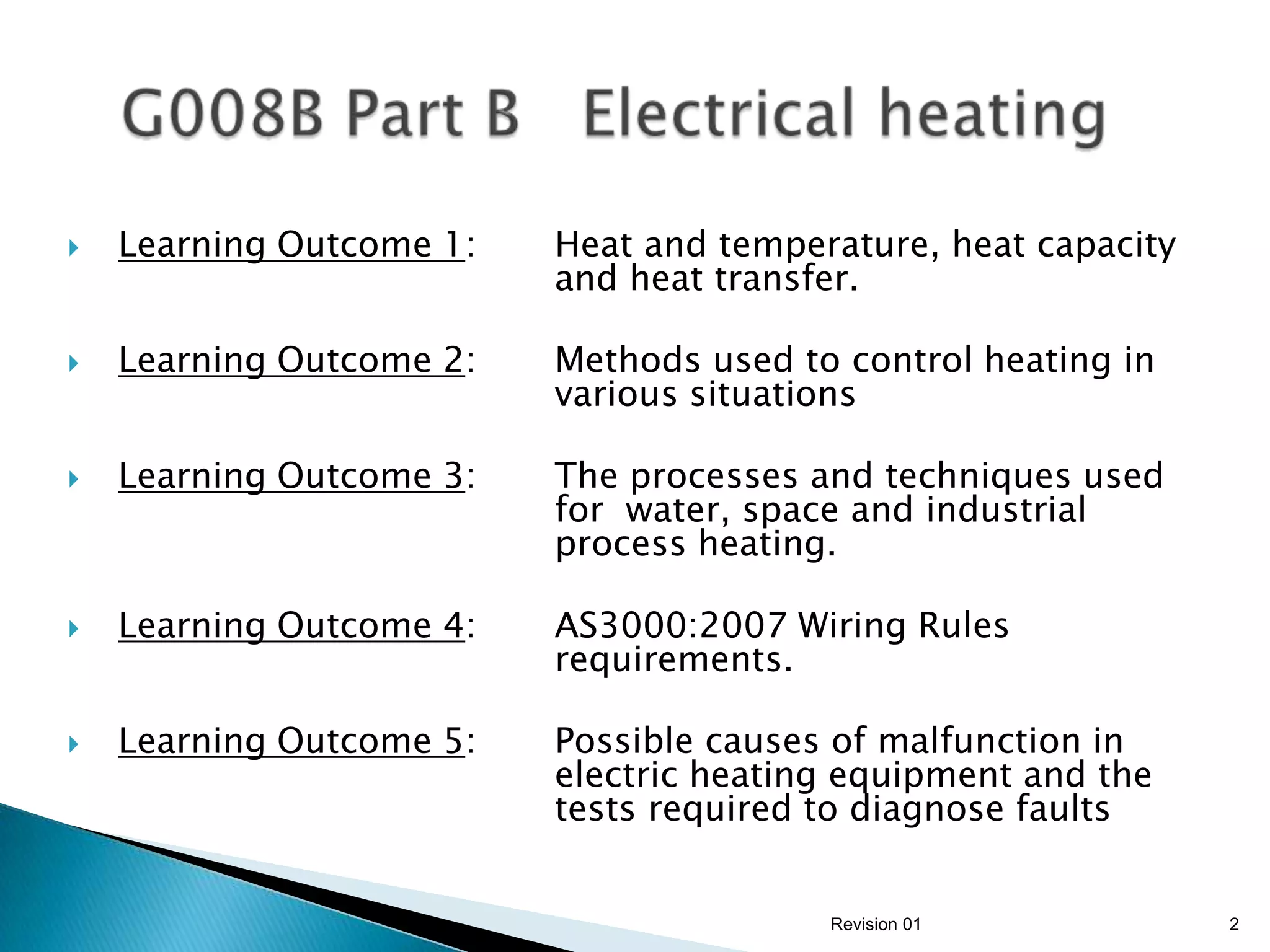 The document discusses various methods of electrical heating, including different types of water heaters, heat control methods like thermostats, and potential faults in electric heating equipment. It provides information on topics like heat transfer methods, temperature scales, specific heat capacity, and requirements for installing water heaters. Diagrams are included to illustrate components like thermostats and water heating systems.