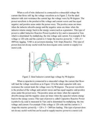2) Reactive power is measured in vars and is supplied by inductive and capacitive loads. It does not do useful work but requires extra current.