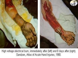 Electrical safety is an important issue that can prevent fatalities and injuries. Each year, contact with overhead power lines results in deaths and property damage. Working near electricity puts many workers at risk, including equipment operators, emergency responders, and those on ladders or scaffolds. Even small amounts of electricity can cause harm, with just 75mA potentially causing death. Proper safety training and coordinating work with utilities can help prevent electrical accidents.