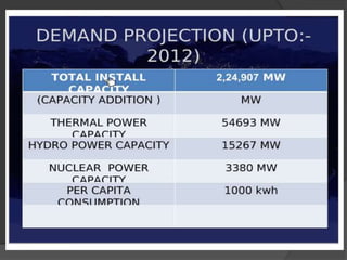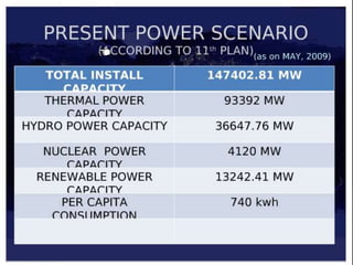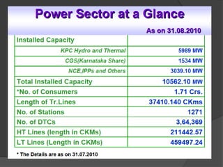 The document outlines the basic electrical power systems in Karnataka, focusing on the generation, transmission, and distribution of electricity, along with non-commercial energy sources like biomass. It details the dependency on imports for coal and petroleum, and highlights the operational aspects of the Karnataka Power Transmission Corporation Limited (KPTCL) and its associated electricity supply companies. Additionally, it discusses power consumption patterns, costs, and a project for developing the Manipal University campus into an eco-city with sustainable energy practices.