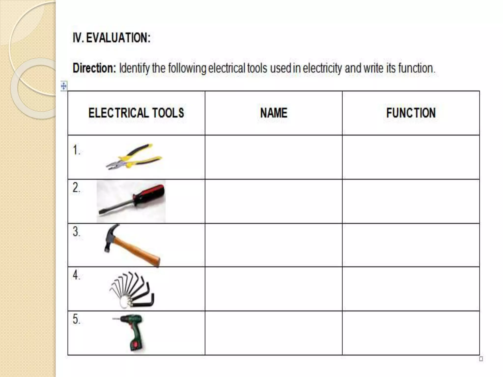 ELECTRICAL TOOLS ANDTHEIR