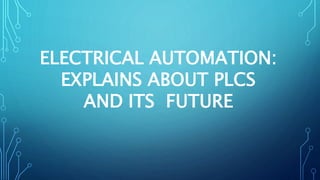 The document details electrical training focused on programmable logic controllers (PLCs) and their application in industrial automation. It outlines the structure and functions of PLC hardware components, programming languages, system buses, and the future evolution of PLCs and programmable automation controllers (PACs). The text emphasizes the need for ongoing enhancements in technology while addressing the historical maturity of PLC systems.