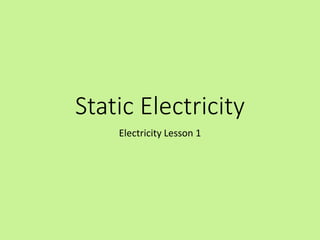 This document provides information about static electricity and circuits. It discusses how static electricity is built up and the three ways an object can become electrically charged: friction, conduction, and induction. It defines static electricity as the build up of electrical charges on an object when it is not moving. The document also covers the basics of circuits, including the components of a simple circuit and different types of circuits. It defines a circuit as a complete path for current to flow and discusses series and parallel circuits.