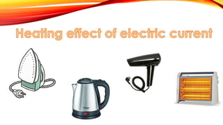 Ohm's law states that the voltage across a conductor is directly proportional to the current flowing through it, provided all physical conditions and temperatures remain constant. Resistance is a measure of opposition to current flow and depends on the material, length, and cross-sectional area of the conductor. The heating effect of electric current is used in various appliances like electric bulbs, heaters, and irons where a conductor is heated by the passage of current. Electric power is defined as the rate at which electrical energy is transferred by a circuit and is measured in watts.