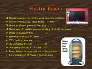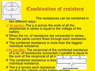 3. Ohm's law states that current is directly proportional to potential difference and inversely proportional to resistance. Resistance depends on the material and dimensions of the conductor as well as temperature.
