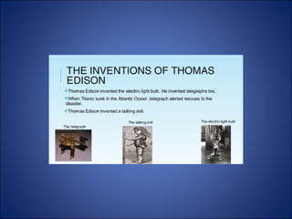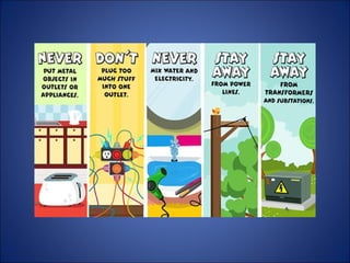 The document discusses electricity and how it powers many aspects of modern life. It covers static electricity, magnetism, circuits, and different types of energy including heat, light, sound, and movement. Videos are linked throughout to provide further explanation and examples of electrical concepts and how electricity is converted into other forms of energy to power appliances and devices in homes and everyday life.