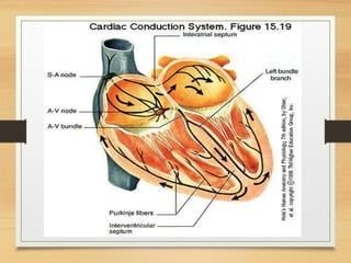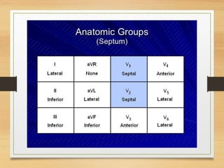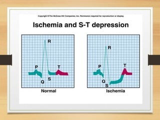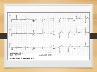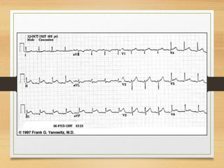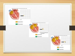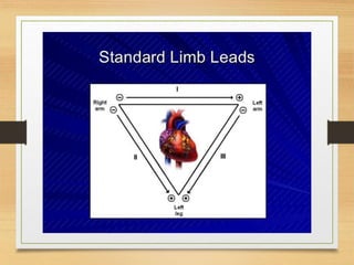 The document discusses electrical activity of the heart as recorded by an electrocardiogram (ECG). It defines key ECG terminology like waves, intervals, complexes and explains what each part of the ECG represents in terms of electrical activity in the heart. Specific waves like P, QRS, T are described in detail along with common abnormalities. Other concepts covered include heart rate calculation methods, cardiac rhythms and axis determination. The document provides a comprehensive overview of interpreting and understanding ECG readings.