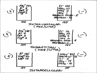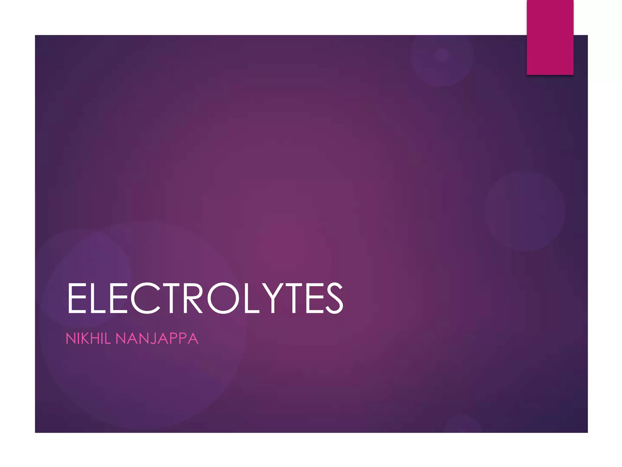 This document discusses electrolyte imbalances, including sodium, potassium, chloride, calcium, and magnesium. For each electrolyte, it covers normal levels, causes of imbalances, signs and symptoms, diagnostic findings, and treatment approaches. Key points include the roles of electrolytes in nerve impulse transmission, acid-base balance, and other bodily functions. Major imbalances discussed are hyponatremia, hypernatremia, hypokalemia, hyperkalemia, hypocalcemia, hypercalcemia, hypomagnesemia, and hypermagnesemia.