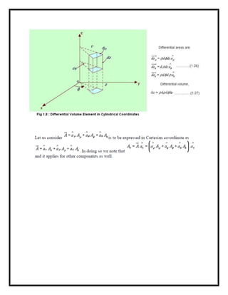 The document outlines lecture notes on electromagnetic field theory, covering topics such as electric fields, magnetostatics, electromagnetic induction, and wave propagation. It details the fundamental principles including Coulomb's Law, Gauss's Law, and various coordinate systems used in the analysis. Additionally, it touches on the significance of electromagnetic theory in electrical engineering and related applications.