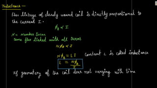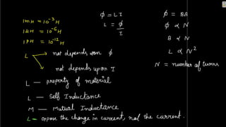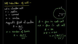 1. Self induction is the phenomenon where an induced electromotive force (emf) is generated in a circuit or coil due to a change in the current flowing through it.