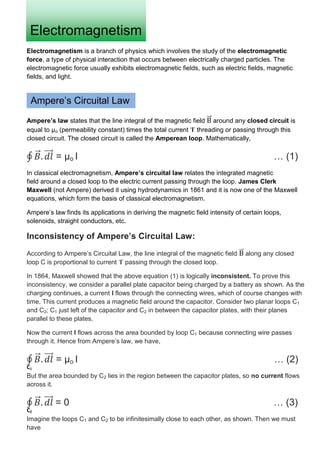 fields, and light. Electromagnetism is a branch of physics which involves the study of the electromagnetic