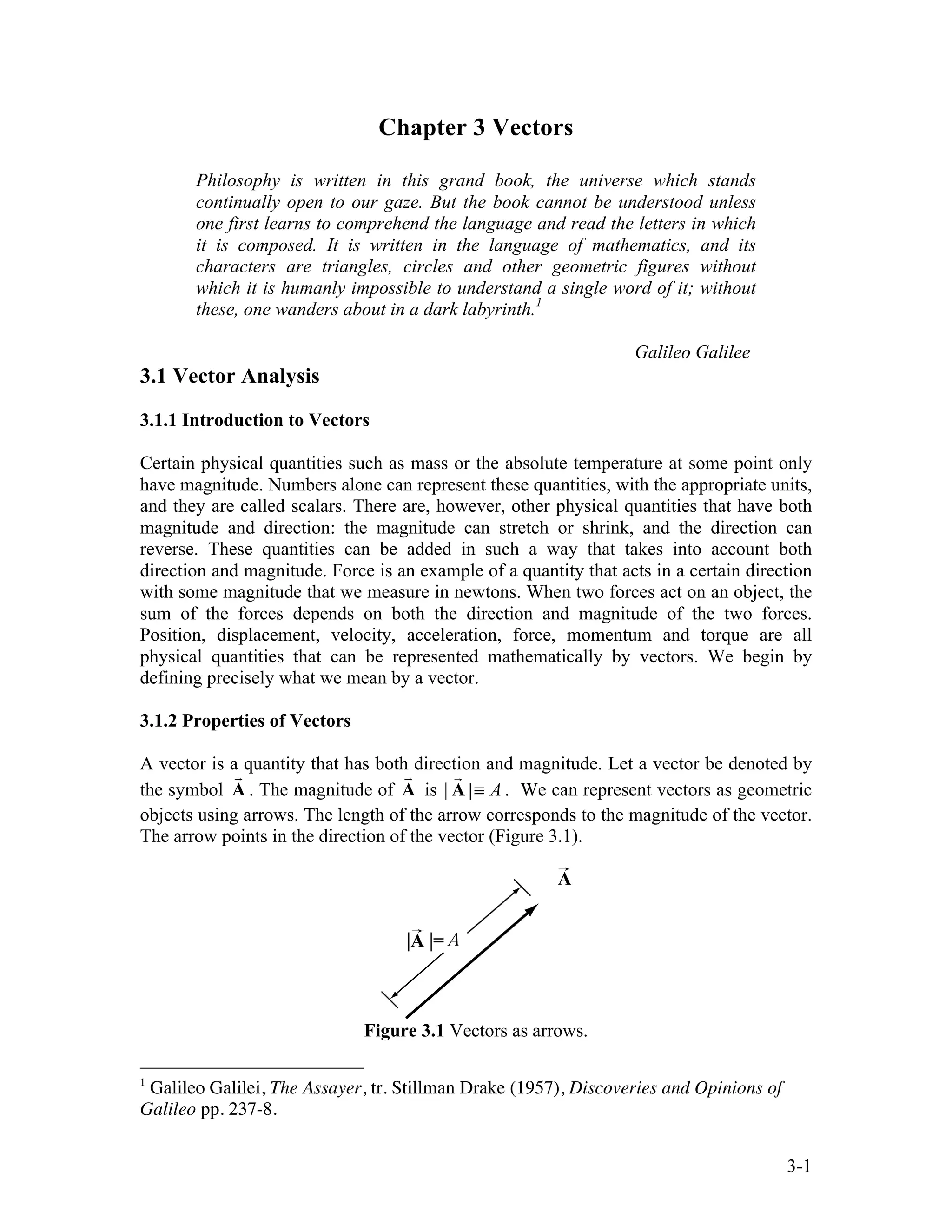 Chapter 3 discusses vectors, defining their properties and operations such as vector addition and scalar multiplication. It introduces the Cartesian coordinate system as a framework for representing vectors and applying them to physical quantities like force and displacement. The chapter emphasizes the importance of understanding vector concepts for solving physics problems.