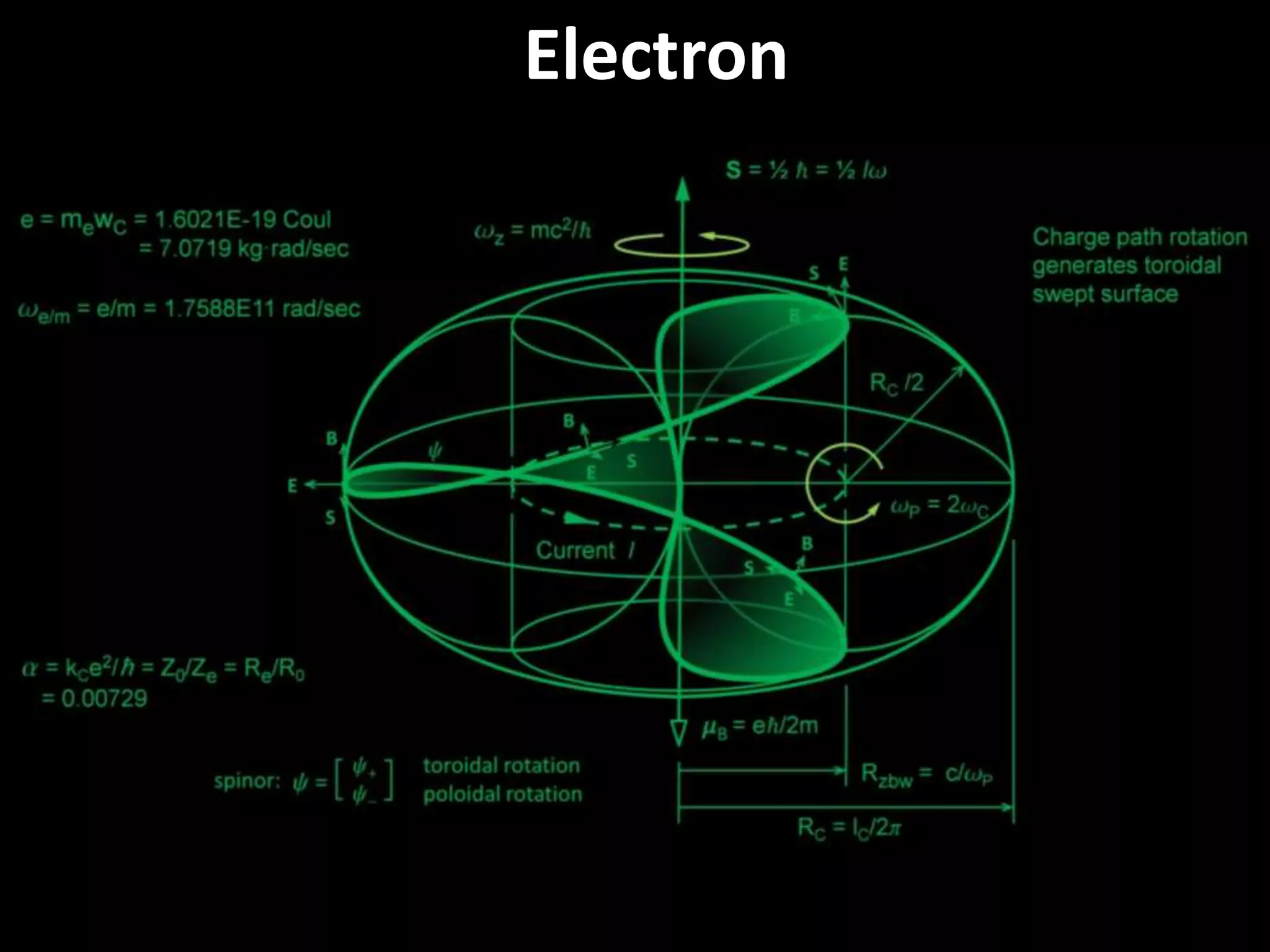 The document provides a comprehensive overview of the nature of light, electricity, and gravity through quantum wave mechanics. It models the electron as a closed-loop standing wave and the photon as a traveling electromagnetic wave, emphasizing the role of precession and various energy fields. Concepts such as charge, mass, and gravitational interactions are explored alongside the behavior of fundamental particles like electrons and positrons within quantum chromodynamics.