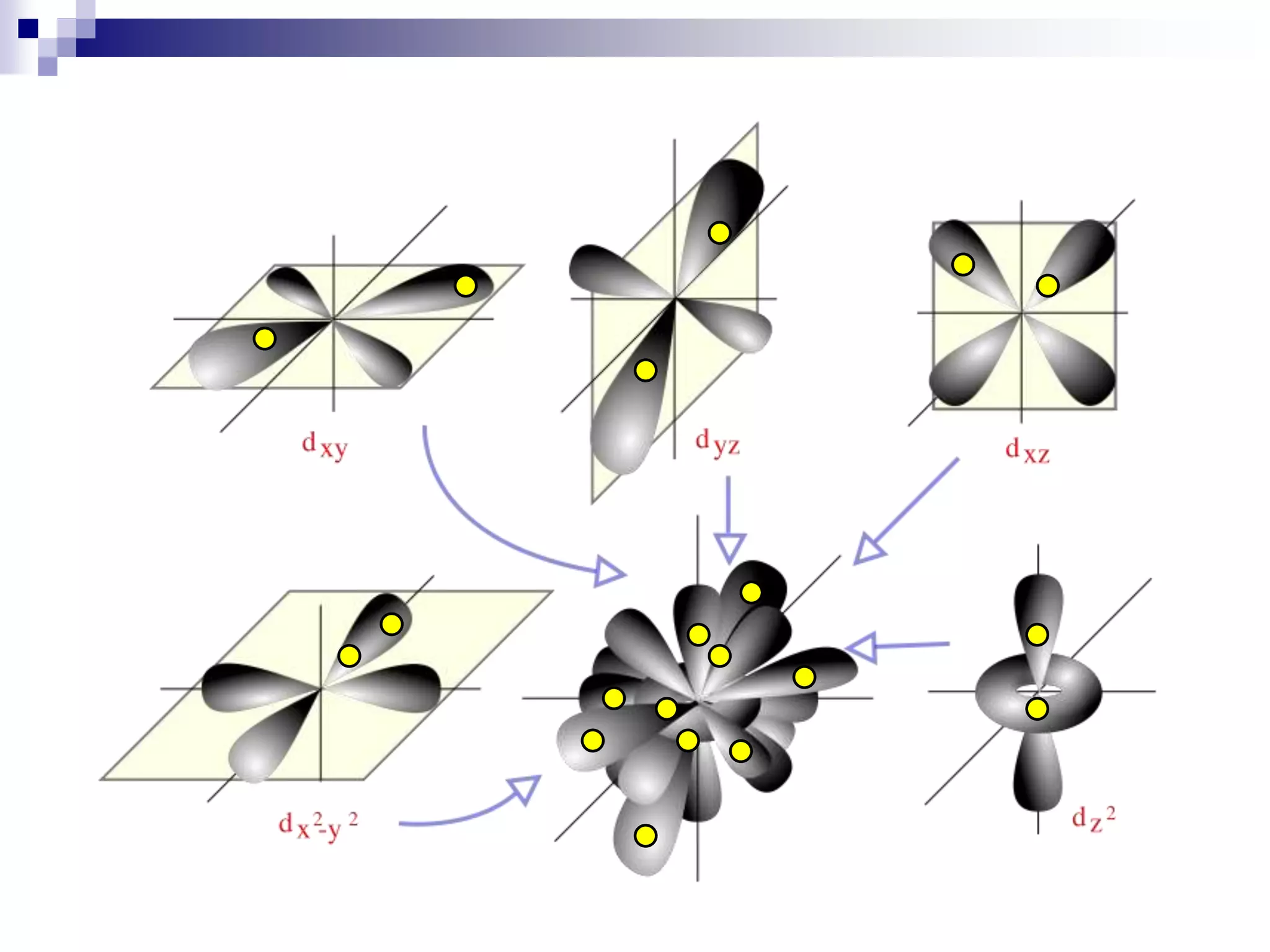 This document provides information on electron configuration and the quantum mechanical model of the atom. It discusses electron configuration notation which uses symbols of orbitals and superscripts to indicate the number of electrons in each orbital. It also covers various principles like the Aufbau principle, Pauli exclusion principle, and Hund's rule. Additionally, it defines the four quantum numbers - principal, angular, magnetic, and spin quantum numbers - which describe the properties of electrons in atomic orbitals. It also gives examples of orbital shapes and capacities for different principle quantum levels.