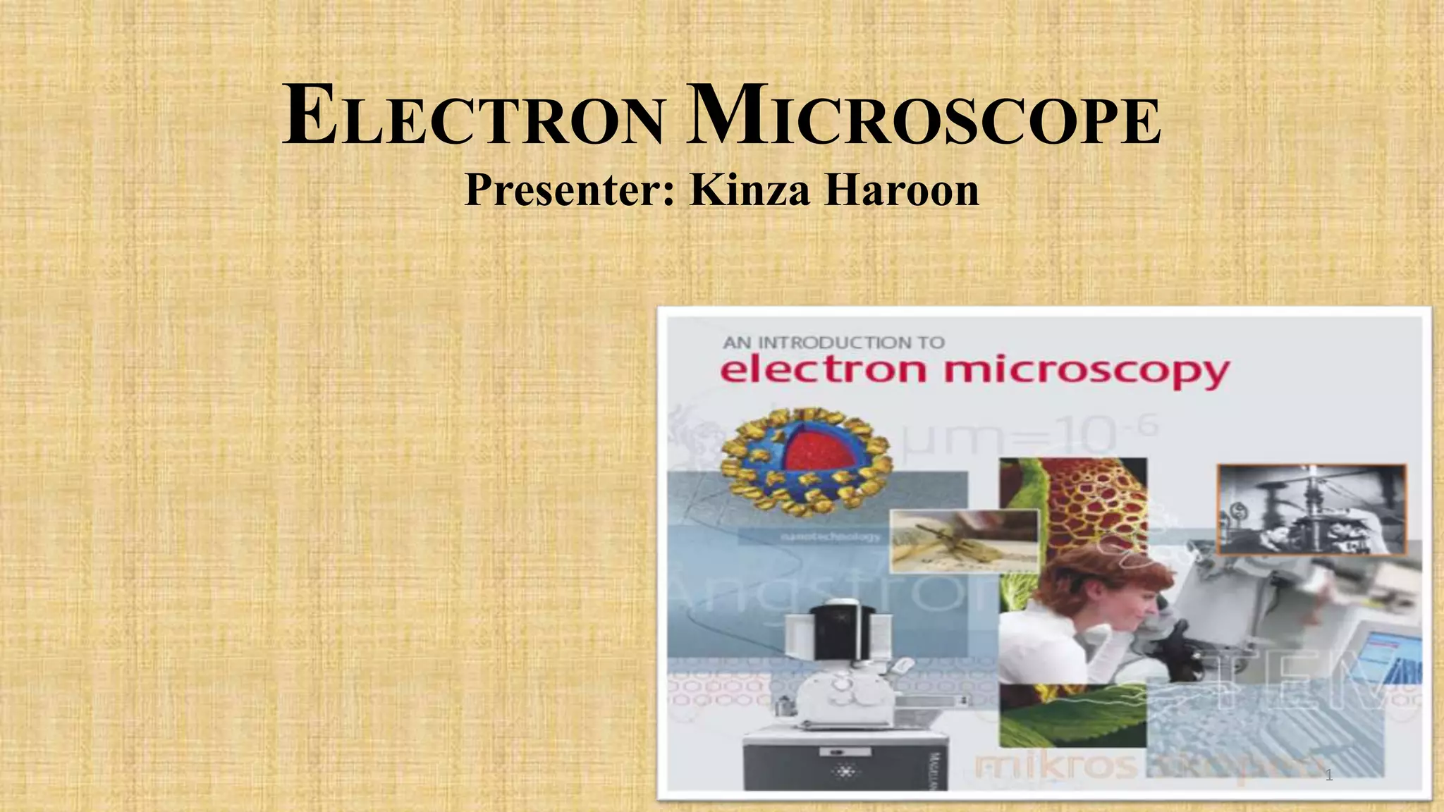 The electron microscope was invented in 1931 and allows viewing objects at much higher magnifications than a light microscope. There are two main types: transmission electron microscopes (TEM), which use a beam of electrons to view thin samples, and scanning electron microscopes (SEM), which scan a sample's surface with a focused beam. TEMs can achieve resolutions of less than 1 nanometer but require complex sample preparation while SEMs provide three-dimensional views of surfaces but have lower resolution. Both have contributed greatly to scientific fields like biology, medicine, and materials science by revealing ultrastructures invisible to light microscopes.