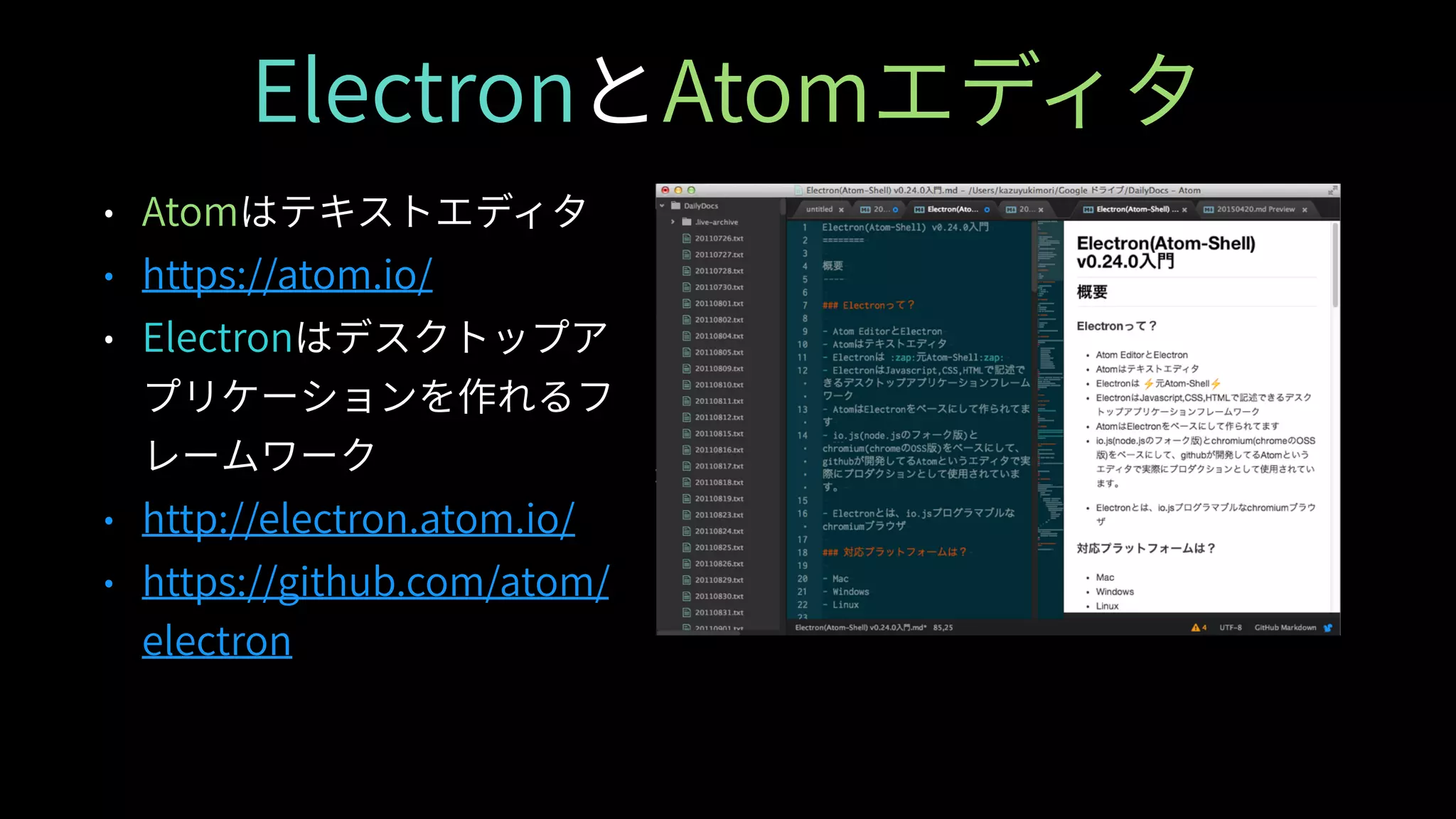 The document discusses an Electron (formerly Atom Shell) meetup. It provides links to documentation on the differences between Electron and Node-webkit. If time permits, an Electron demo may be shown. Electron allows building cross-platform desktop apps using JavaScript, HTML, and CSS by embedding Chromium and io.js. It also references a presentation on embedding Node.js into the Atom editor.