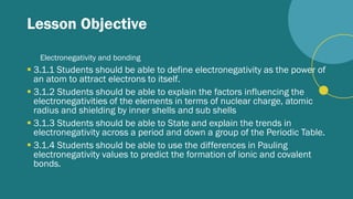 3.1.1 Students should be able to define electronegativity as the power of