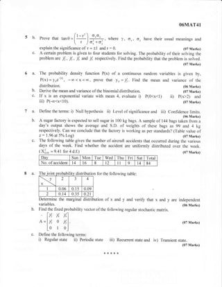 Part B asks students to: 1) Fit a least squares line to given data, 2) Prove and explain a trigonometric identity, 3) Find the probability of solving a problem given individual student probabilities, 4) Define terms related to probability distributions,