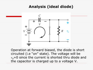The document provides a detailed explanation of clampers, zener diodes, and various circuit configurations for regulating voltage and protecting against transients. It includes analysis of circuit behavior under different conditions, such as forward and reverse bias of diodes, as well as methods for managing load variations and enhancing circuit stability. Practical applications, calculations, and protections mechanisms against inductive kicks and polarity issues are also discussed.