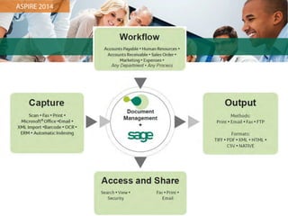 The document discusses the significance of document management in improving efficiency, customer service, and cost-effectiveness within organizations. It outlines the key business drivers for implementing document management solutions, including departmental issues such as delays and lost documents. Additionally, it highlights features of Sage ERP document management, including imaging systems, workflow automation, and advanced search capabilities for better access to critical documents.