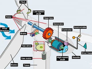 The document discusses different types of electric power plants, including conventional power plants like nuclear, fossil fuel, and hydroelectric plants as well as non-conventional plants such as wind, solar, geothermal, biomass, and ocean power plants. It describes how each type of plant works by harnessing different energy sources to power turbines and generators to produce electricity. Key energy sources discussed include steam, heat, kinetic wind energy, solar radiation, geothermal activity, and organic waste.
