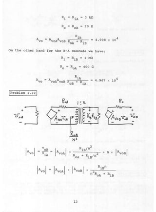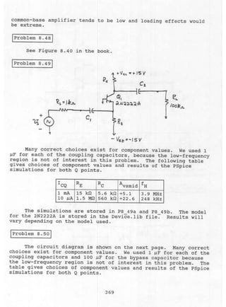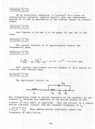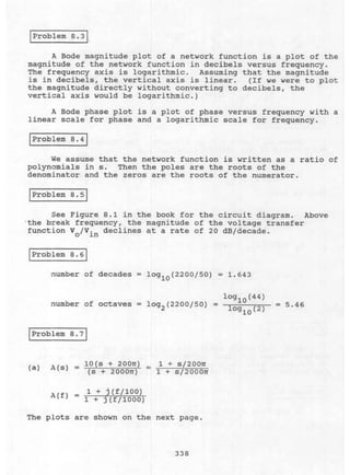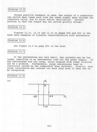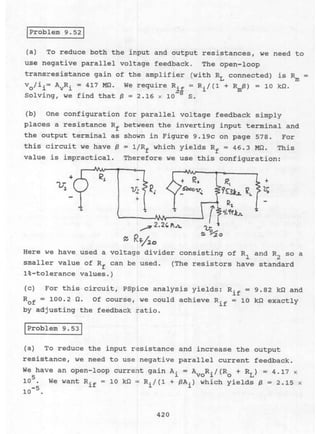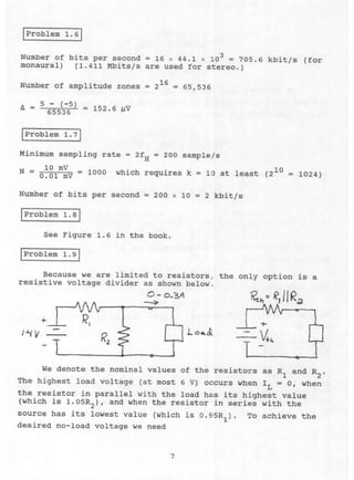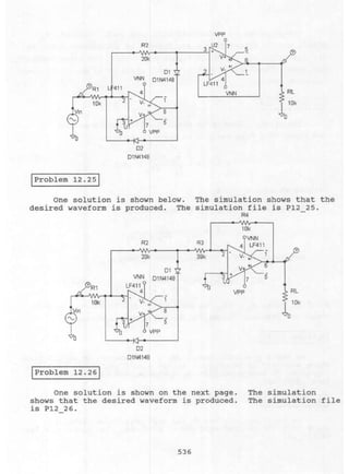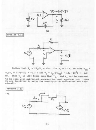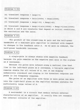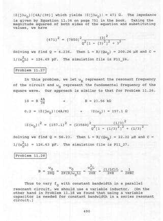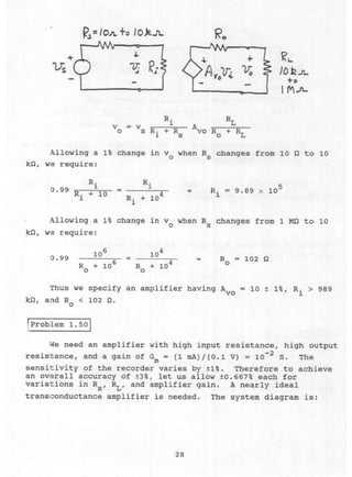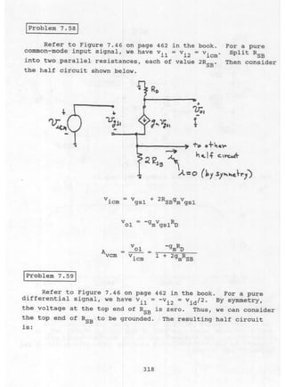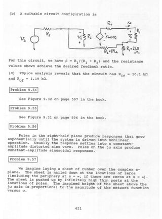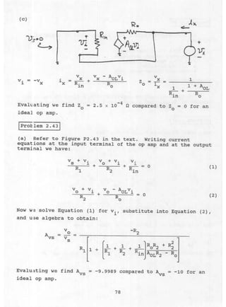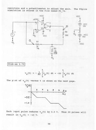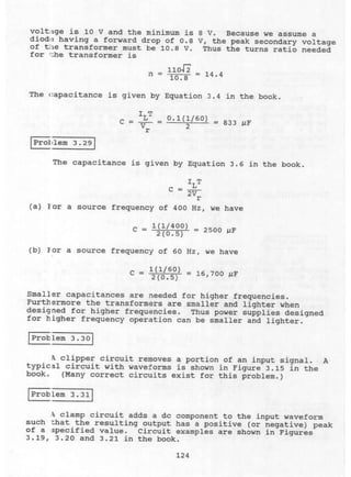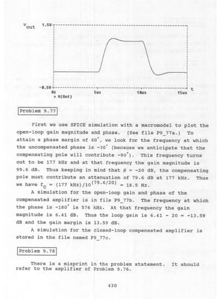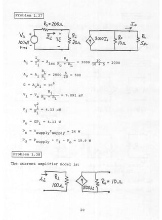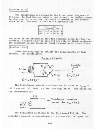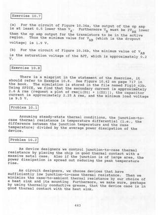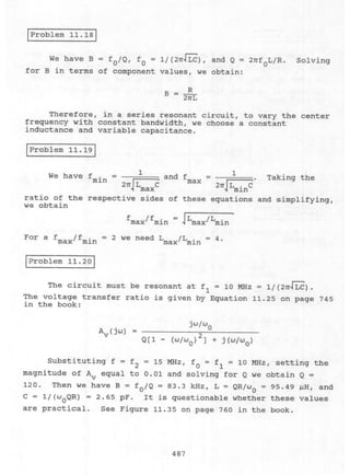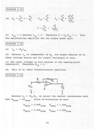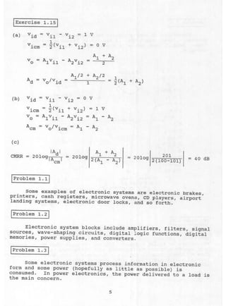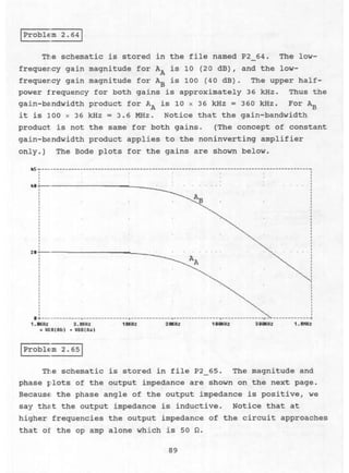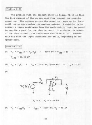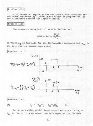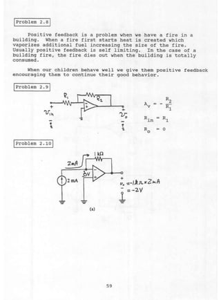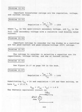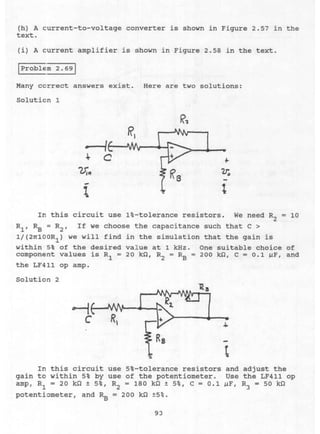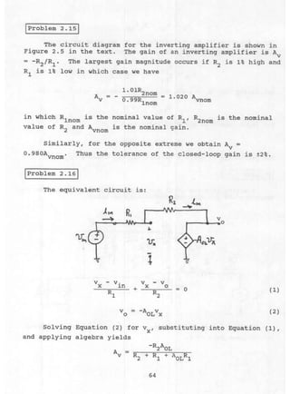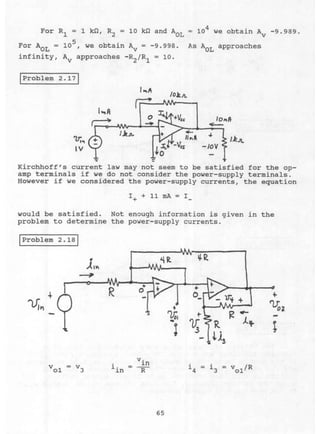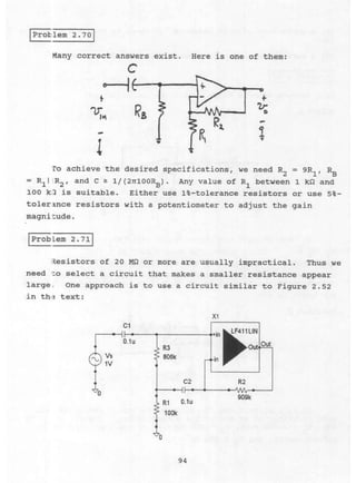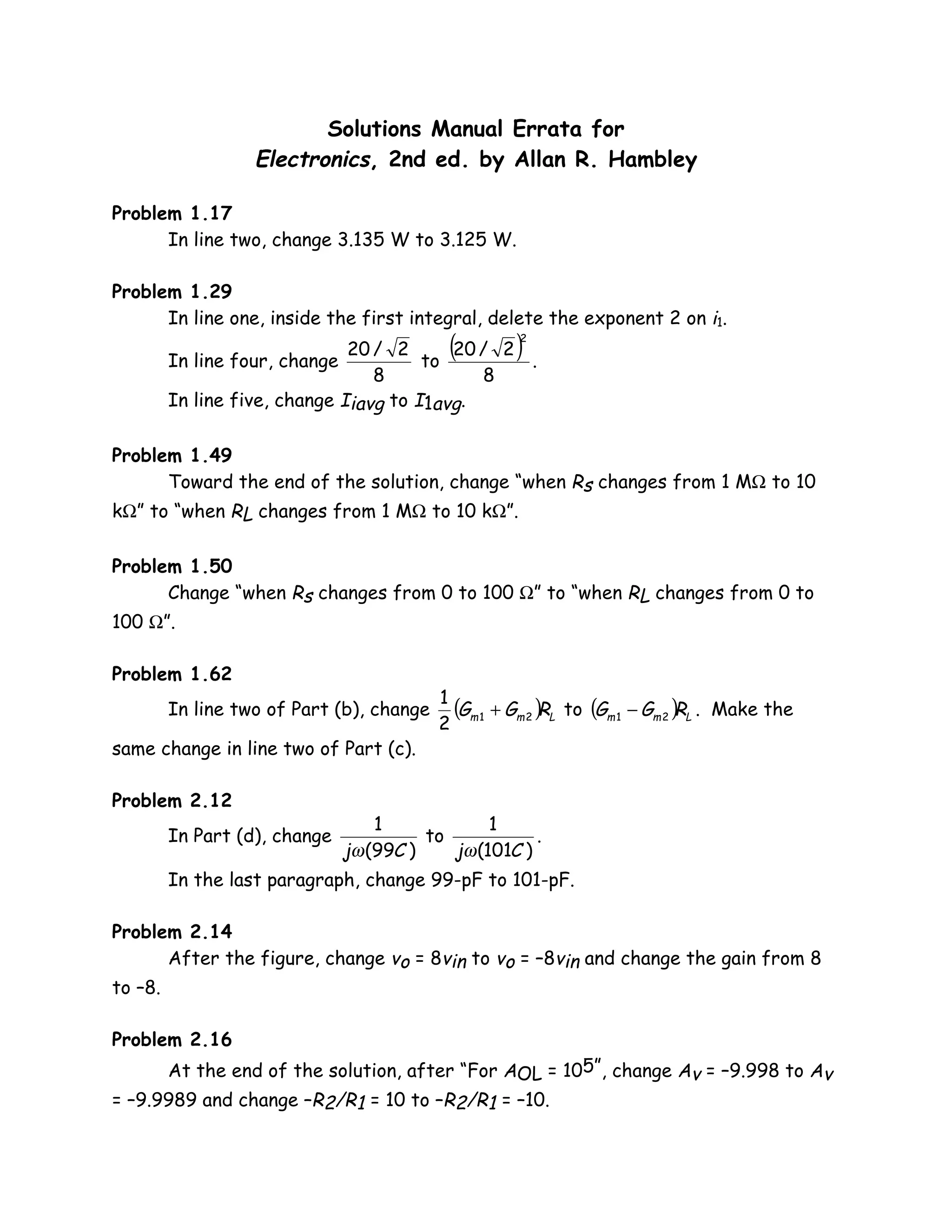 This document provides errata for problems in the textbook "Electronics, 2nd ed. by Allan R. Hambley". It lists over 70 problems and provides corrections to errors in equations, values, figures, and problem statements. The corrections range from minor typos and mathematical errors to missing details in problem descriptions. The goal is to resolve inaccuracies in the textbook solutions to improve learning and understanding of circuit analysis concepts.