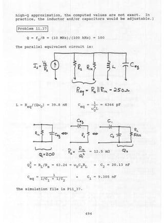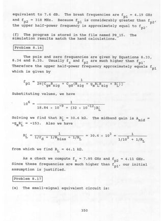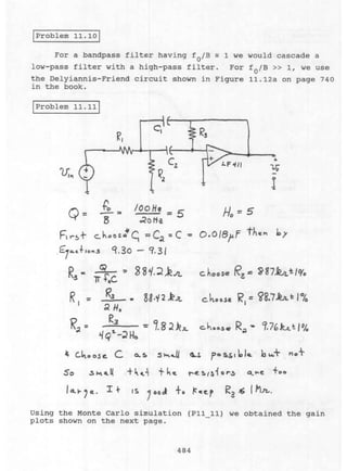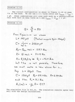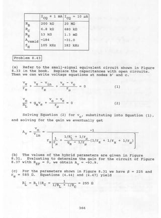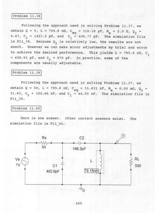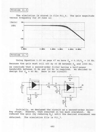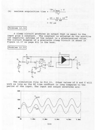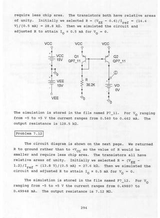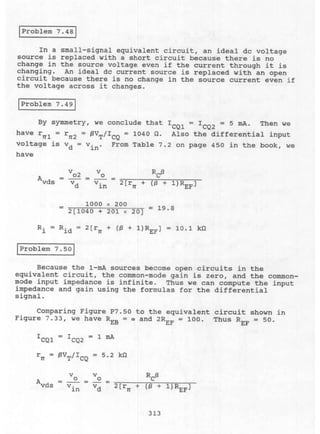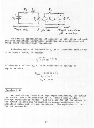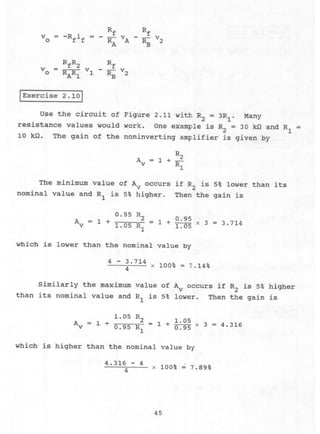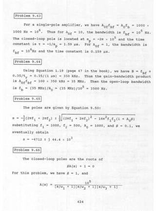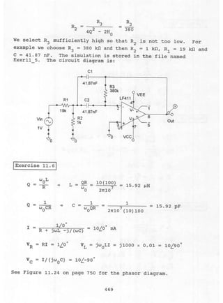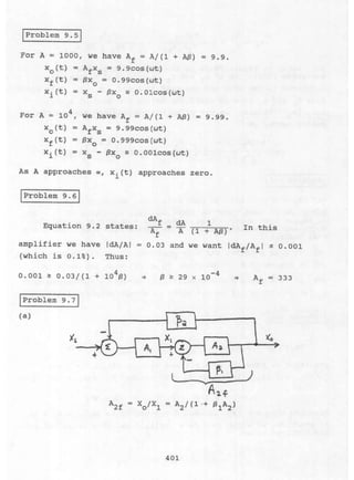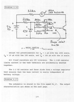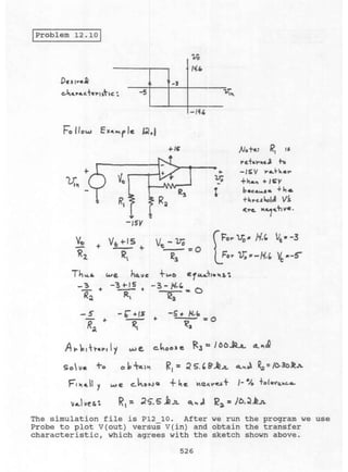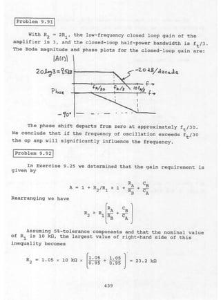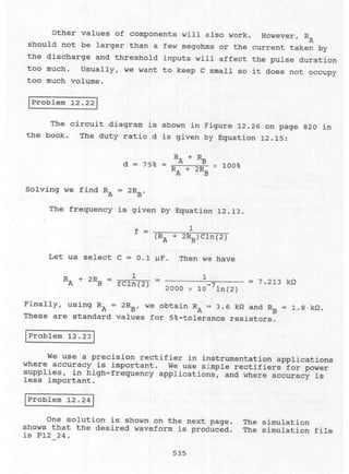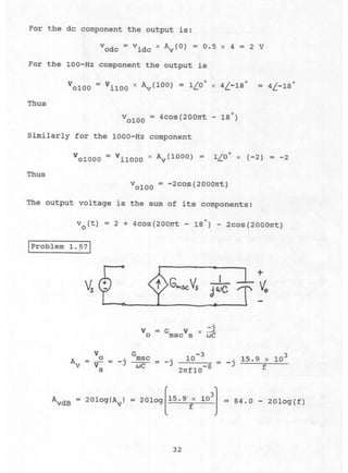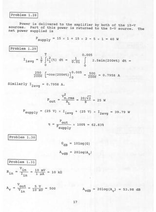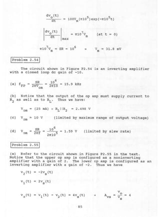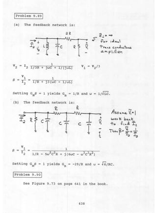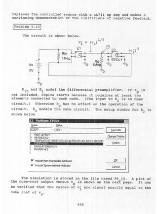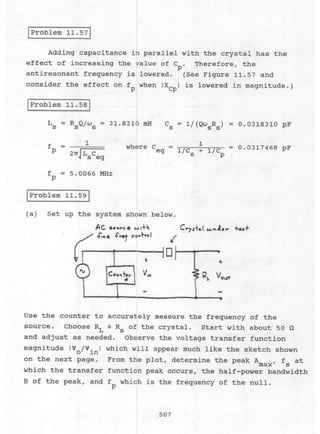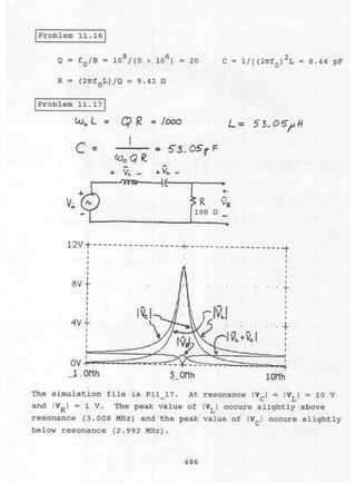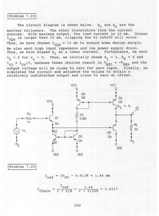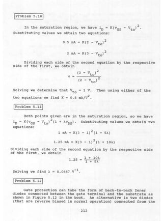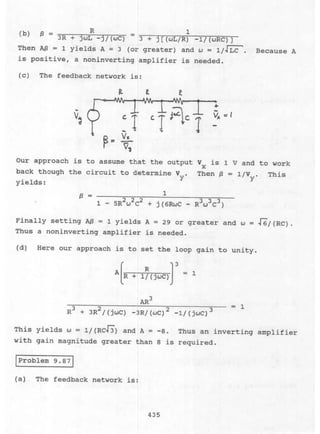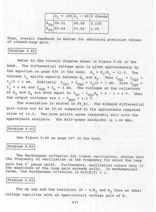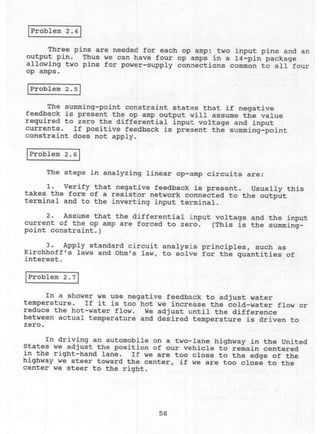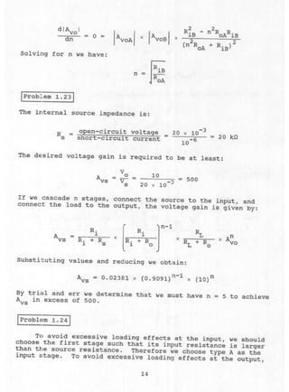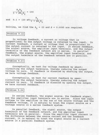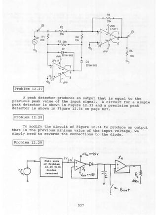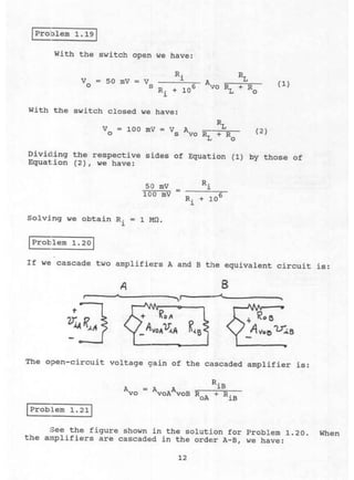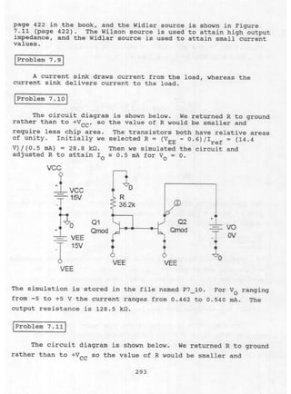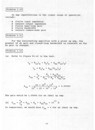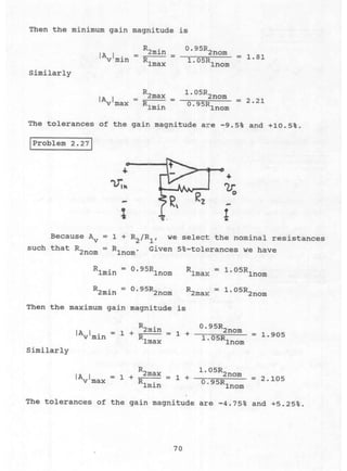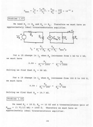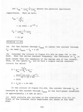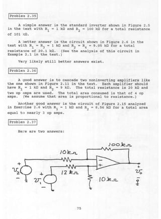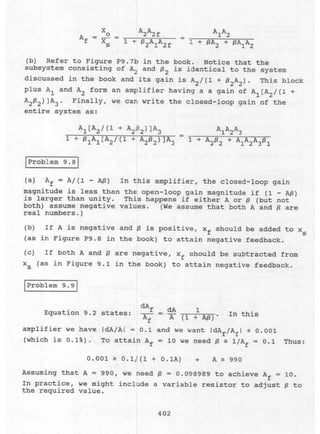 This document provides errata for problems in the textbook "Electronics, 2nd ed. by Allan R. Hambley". It lists over 70 problems and provides corrections to errors in equations, values, figures, and problem statements. The corrections range from minor typos and mathematical errors to missing details in problem descriptions. The goal is to resolve inaccuracies in the textbook solutions to improve learning and understanding of circuit analysis concepts.
