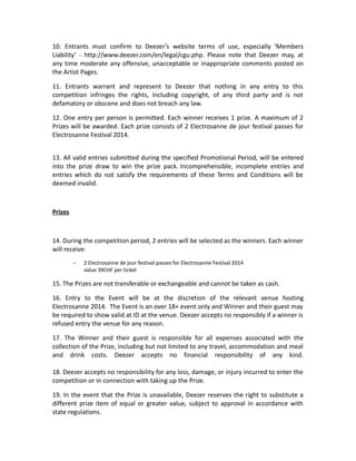 1. The terms and conditions govern the Electrosanne Competition run by Deezer on their website. Participation means acceptance of the terms.