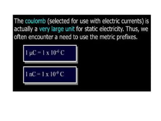 Electrostatics is a branch of physics that studies electric charges at rest. It was discovered in 600 BC by Thales that certain materials like amber could attract dust when rubbed. In the 16th century, William Gilbert discovered that other materials like glass and ebonite showed the same phenomenon. Benjamin Franklin later experimentally studied the electrification of objects. Coulomb's law quantifies the electrostatic force of attraction or repulsion between electric charges. Electric field is produced by electric charges and exerts force on other charges. Gauss' law relates the electric flux through a closed surface to the net electric charge within the surface.