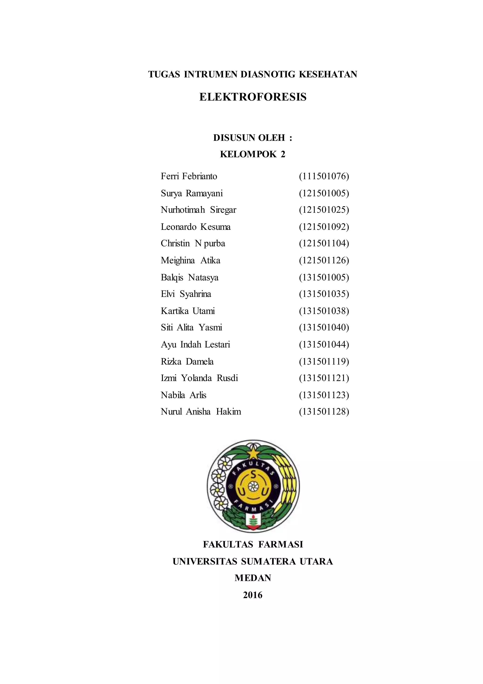 Dokumen ini membahas teknik elektroforesis, yang digunakan untuk memisahkan dan mengidentifikasi molekul bermuatan seperti DNA berdasarkan pergerakan mereka dalam medan listrik. Elektroforesis melibatkan penggunaan gel sebagai medium untuk memisahkan komponen, dengan berbagai jenis gel yang memiliki kelebihan dan kekurangan masing-masing. Aplikasi elektroforesis sangat penting dalam bidang kesehatan dan biologi molekuler, termasuk dalam analisis DNA untuk kepolisian dan penelitian ilmiah.